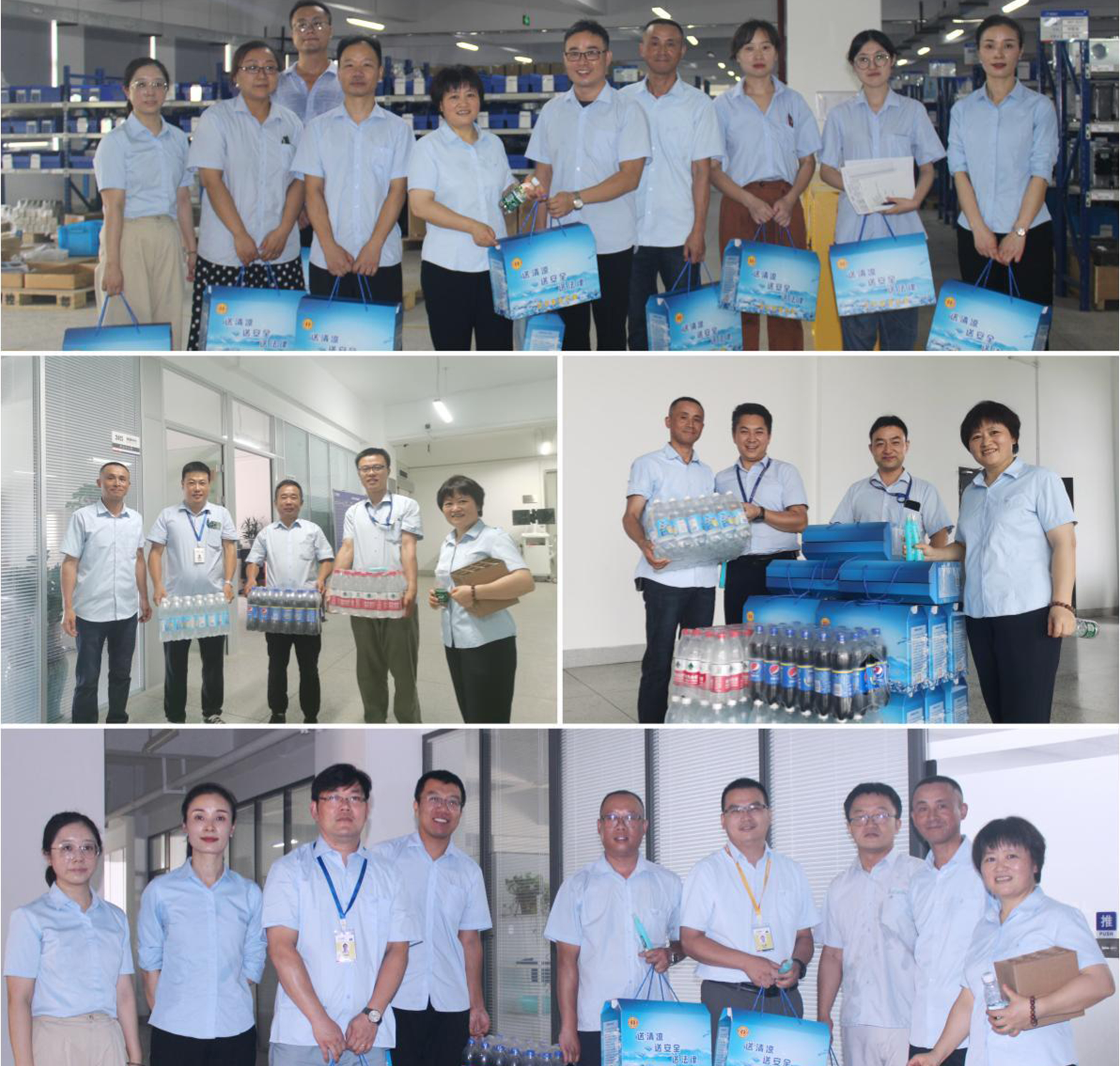 8月5日,江寧區(qū)總工會徐靜副主席、高新區(qū)總工會劉捷常務(wù)副主席一行6人來到普愛醫(yī)療,為一線的生產(chǎn)員工送來了防暑降溫清涼禮包和可樂、蘇打水等解暑飲品,向普愛醫(yī)療總經(jīng)理龔炯女士親切的詢問員工的高溫作業(yè)情況。