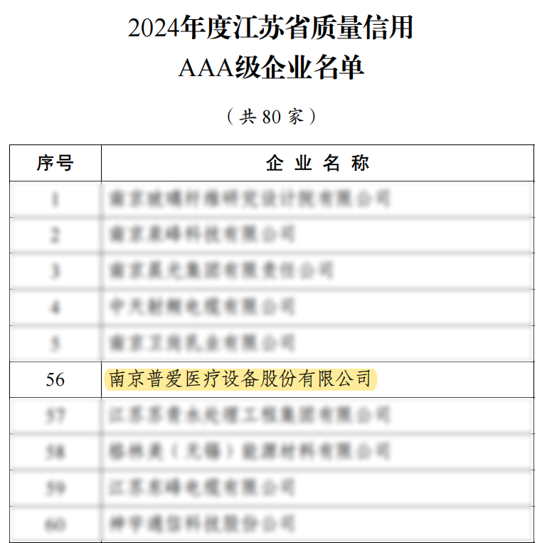 11月25日,江蘇省市場監(jiān)管局發(fā)布了《2024年度江蘇省質(zhì)量信用AAA級(jí)企業(yè)公示名單》,普愛醫(yī)療以優(yōu)秀的產(chǎn)品質(zhì)量、穩(wěn)定的運(yùn)營能力及良好的社會(huì)責(zé)任實(shí)踐成功入選。