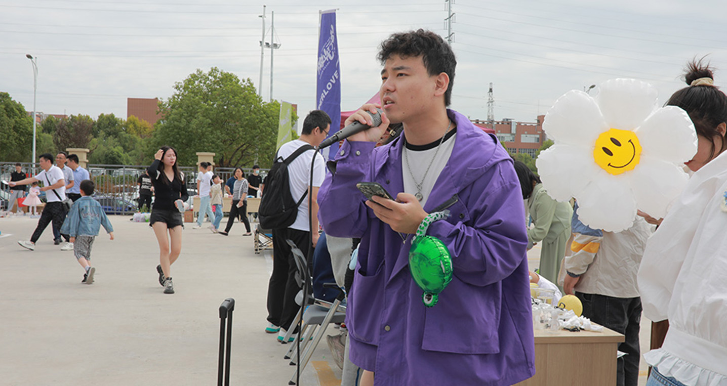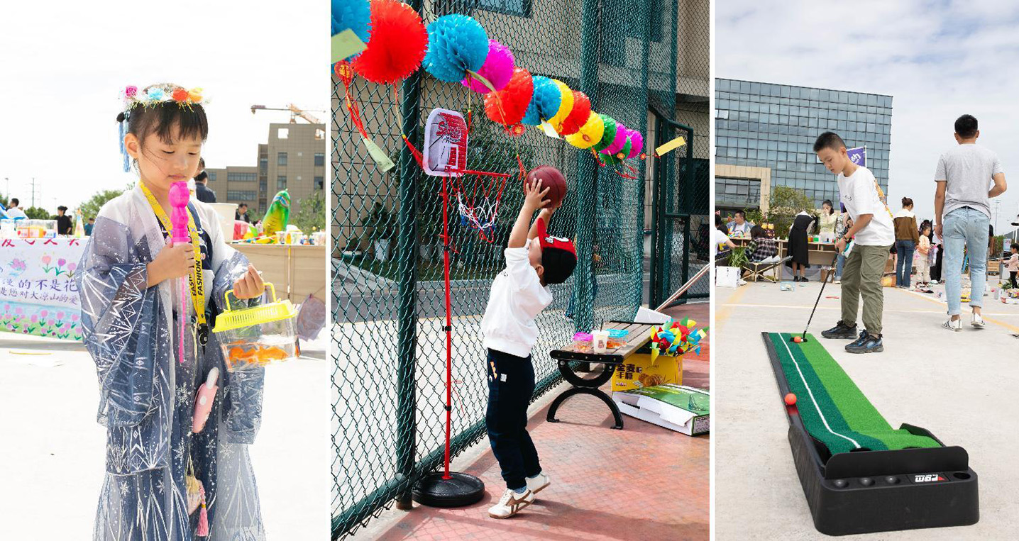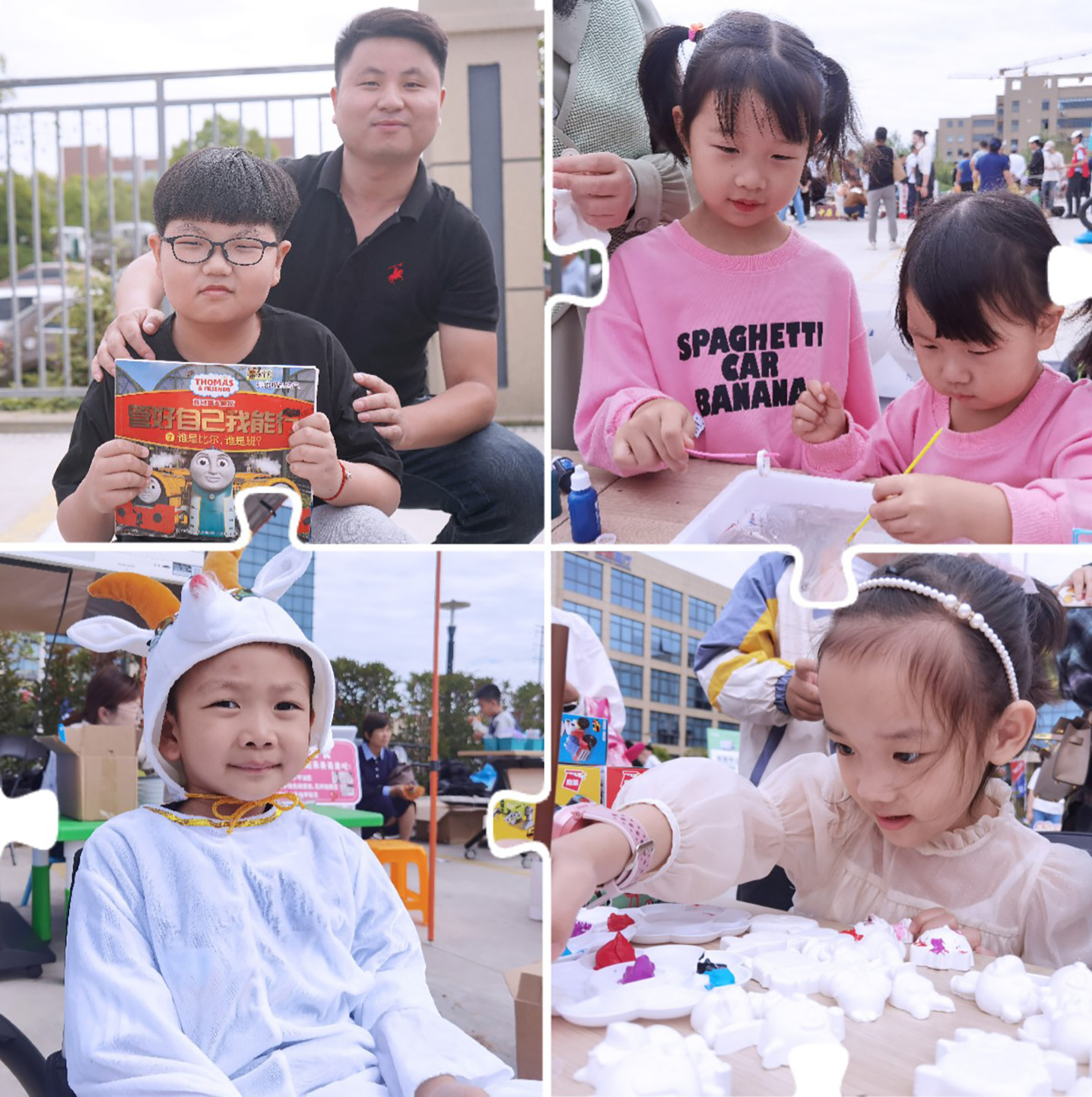 四年級的薛宇凡帶來了各種自己看過的書籍;一年級的劉雨桐在售賣DIY陶瓷娃娃;幼兒園中班的徐易辰穿著綿羊服在推銷自己的萌寵……