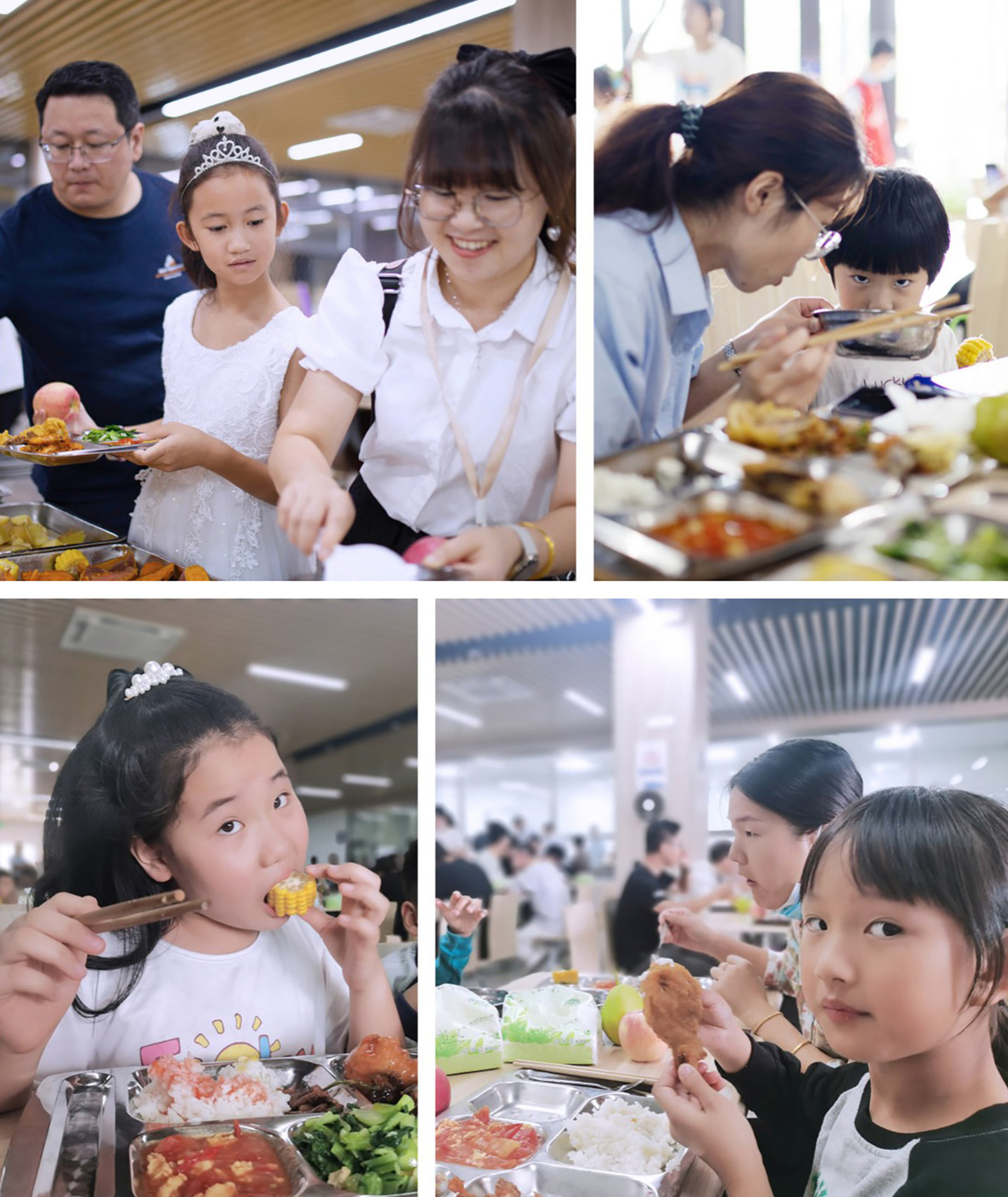 食堂為小朋友們特別準備了油燜大蝦、五香牛肉、酸菜魚、脆皮雞腿、香酥茄夾等健康又美味的午餐
