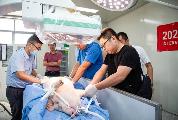 所有理論課程結(jié)束后,我們安排了動(dòng)物介入實(shí)操及觀摩,由南京市第一醫(yī)院、南京醫(yī)科大學(xué)專家及團(tuán)隊(duì)現(xiàn)場(chǎng)指導(dǎo)和操作,主要目的是讓我們學(xué)員更深刻的了解介入醫(yī)學(xué),通過本次臨床實(shí)操,讓他們對(duì)手術(shù)流程,相關(guān)器械之間的配合及手術(shù)技巧能更好的掌握。