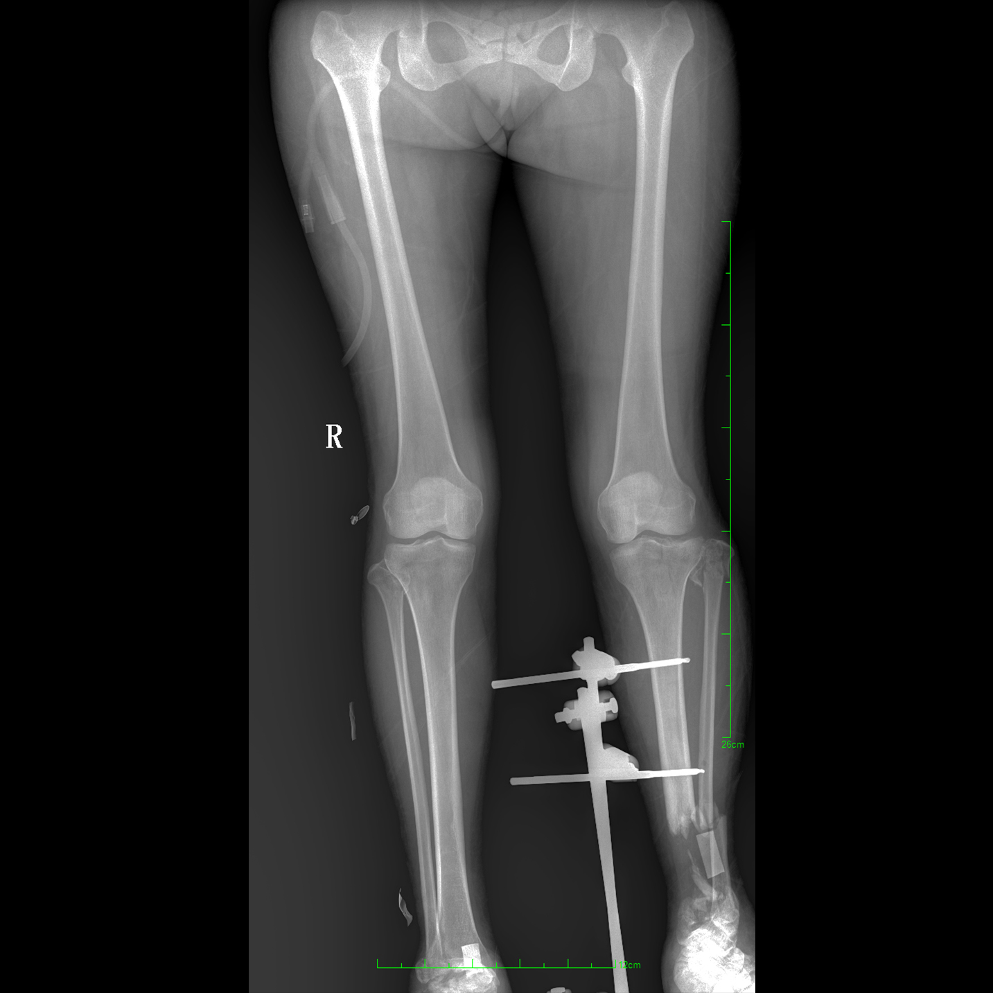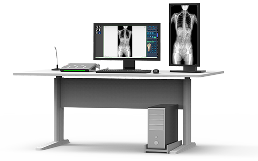 17"*34"有效視野,一次成像不拼接。相較于多張攝影再軟件拼接的DR設備,PLX8600解決了拼接圖像存在密度不均勻,拼接處圖像配準和放大效應等問題,給臨床帶來了大視野影像解決方案,可一次性覆蓋全脊柱或雙下肢影像。