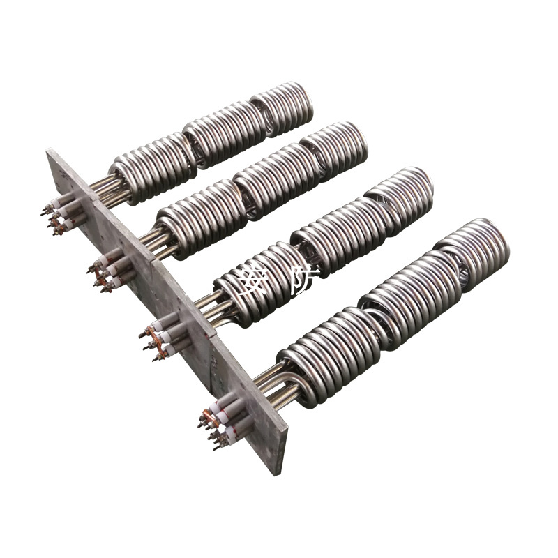 法蘭電熱管(也稱插入式電加熱器):是采用U型管狀電熱元件,多支U型電熱管焊接在法蘭上集中加熱,依據(jù)加熱不同介質(zhì)設(shè)計規(guī)范,按照功率配置要求裝配在法蘭蓋上,插入需加熱物料中,發(fā)熱元件工作時所發(fā)出的大量熱量傳導(dǎo)給被加熱介質(zhì)使介質(zhì)溫度升高,達到所需的工藝要求,主要用于敞開式、封閉式的溶液箱和循環(huán)系統(tǒng)中加熱用。