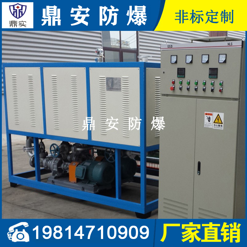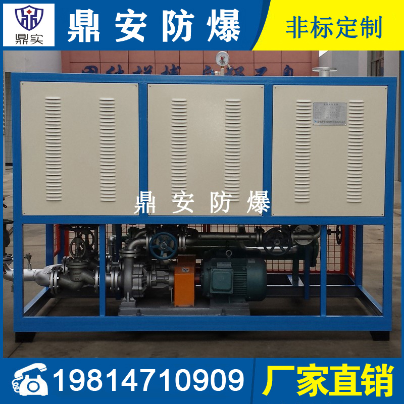 導(dǎo)熱油加熱機(jī)組(又稱電加熱導(dǎo)熱油爐)由防爆電加熱器、有機(jī)熱載體爐、換熱器(可配置)、控制柜,熱油泵、膨脹槽等組成一個(gè)整體的系統(tǒng),用戶只需要接入電源、介質(zhì)的進(jìn)出口管道法蘭及一些電氣接口即可使用。具有完備的運(yùn)行控制和安全監(jiān)測(cè)裝置,能實(shí)行自動(dòng)化控制。能在較低的運(yùn)行壓力下獲得較高的工作溫度。