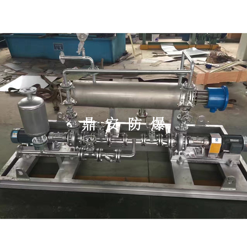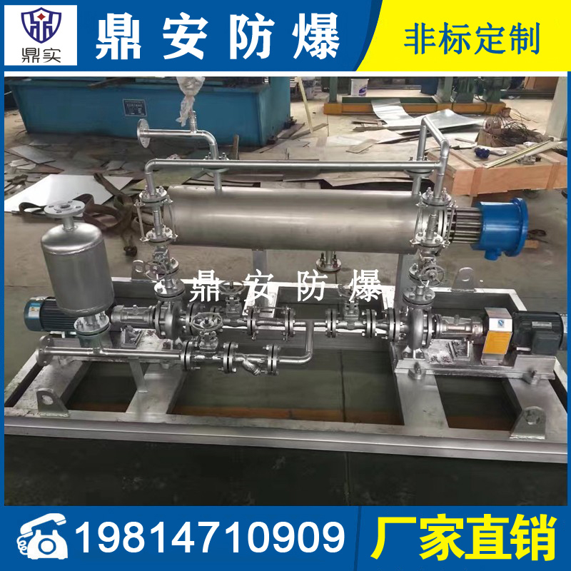 導(dǎo)熱油加熱機(jī)組(又稱電加熱導(dǎo)熱油爐)由防爆電加熱器、有機(jī)熱載體爐、換熱器(可配置)、控制柜,熱油泵、膨脹槽等組成一個整體的系統(tǒng),用戶只需要接入電源、介質(zhì)的進(jìn)出口管道法蘭及一些電氣接口即可使用。具有完備的運(yùn)行控制和安全監(jiān)測裝置,能實行自動化控制。能在較低的運(yùn)行壓力下獲得較高的工作溫度。