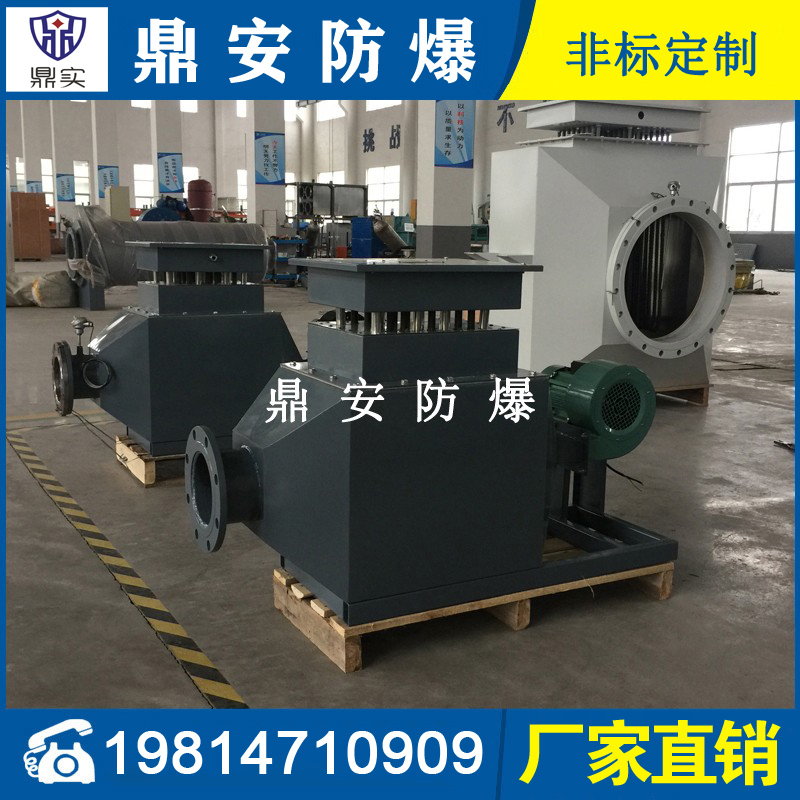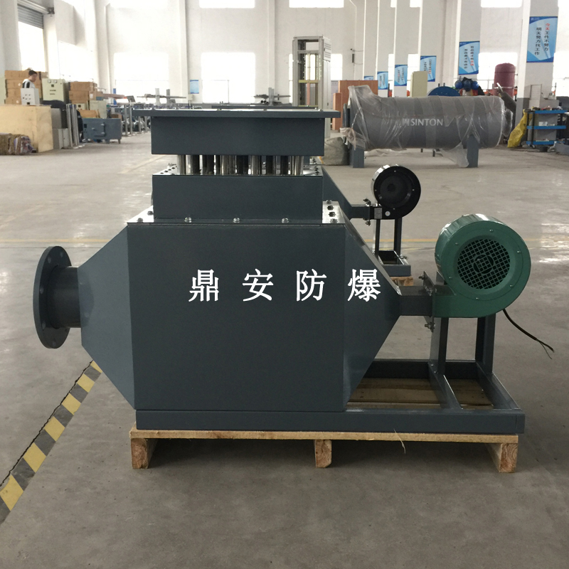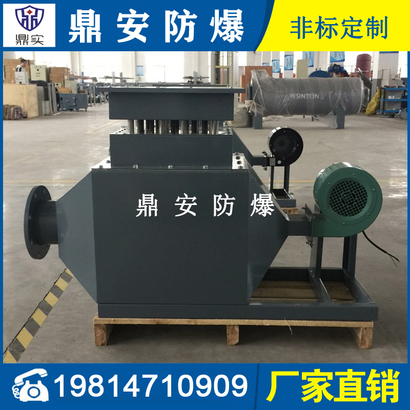 風道式加熱器主要用于風道中的空氣加熱,規(guī)格分為低溫、中溫、高溫三種形式,在結構上的共同之處是采用鋼板支撐電熱管以減少電熱管的振動,接線盒中都裝有超溫控制裝置。另在控制方面除裝有超溫保護外,還在風機與加熱器之間加裝聯(lián)運裝置,以確保電加熱器起動必須在風機起動之后,在加熱器前后加一差壓裝置,以防風機故障,通道加熱器加熱的氣體壓力一般不應超過0.3Kg/cm2,如需超過以上壓力,請選用循環(huán)式電加熱器;低溫型加熱器氣體加熱溫度不超過160℃;中溫型不超過260℃;高溫型不超過500℃。