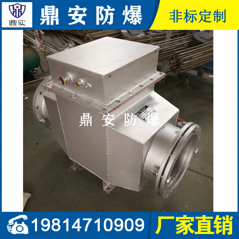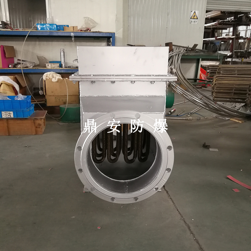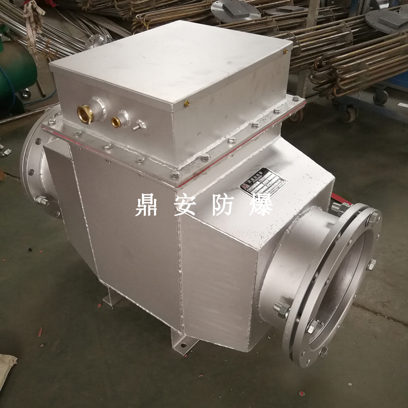 風道式加熱器主要用于風道中的空氣加熱,規(guī)格分為低溫、中溫、高溫三種形式,在結構上的共同之處是采用鋼板支撐電熱管以減少電熱管的振動,接線盒中都裝有超溫控制裝置。另在控制方面除裝有超溫保護外,還在風機與加熱器之間加裝聯(lián)運裝置,以確保電加熱器起動必須在風機起動之后,在加熱器前后加一差壓裝置,以防風機故障,通道加熱器加熱的氣體壓力一般不應超過0.3Kg/cm2,如需超過以上壓力,請選用循環(huán)式電加熱器;低溫型加熱器氣體加熱溫度不超過160℃;中溫型不超過260℃;高溫型不超過500℃。
