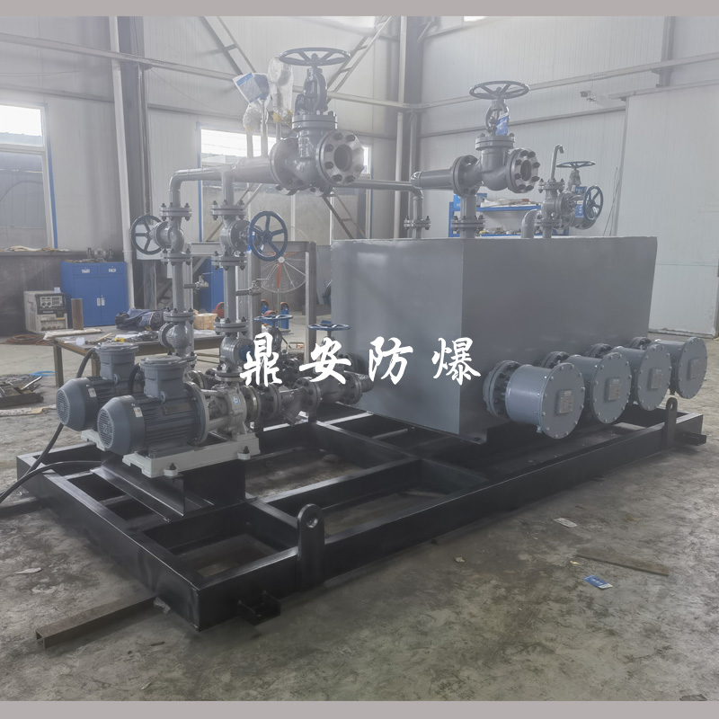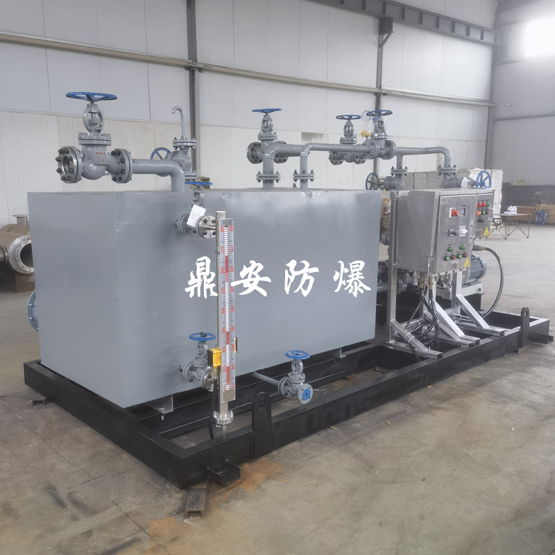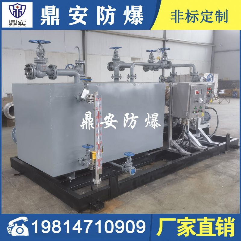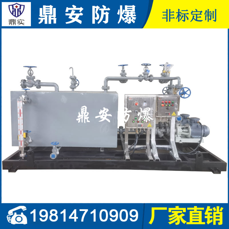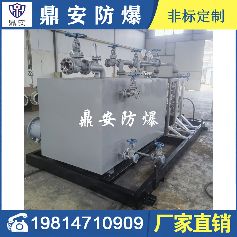 設(shè)備組成 氨水法氨蒸發(fā)器(DYBH-S)由 1、本體 2、噴嘴 3、防爆電加熱器 4、氣氨分離器 5,其他相關(guān)配件(閥門、溫度傳感器,氣動(dòng)調(diào)節(jié)閥、溫度開關(guān)等)o6,DJK溫度控制柜,輔助設(shè)備等組成。容器上配有熱媒液位就地顯示,熱媒溫度遠(yuǎn)傳等相關(guān)信號(hào)采集點(diǎn)。