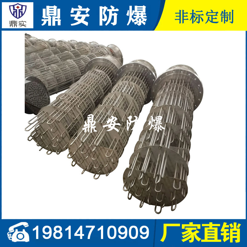防爆法蘭加熱管是由多支加熱管焊接在法蘭上集中加熱。主要用于敞開式、封閉式的溶液箱和循環(huán)系統(tǒng)中加熱用。優(yōu)點(diǎn): 表面功率大,使一般電加熱表面負(fù)荷的2~4倍,高度密集式、結(jié)構(gòu)緊湊。由于整體短而密集,故穩(wěn)定性好,安裝無需支架。組合式法蘭加熱管大多采用氬弧焊接方式使電熱管于法蘭連接,也可利用緊固裝置的形式,即每支電熱管上焊由緊固件。然后與法蘭蓋采用螺母鎖緊。管子于緊固件采用氬弧焊接。緊固件密封處采用科學(xué)的工藝。單支更換方便,大大節(jié)約以后的維修成本選擇進(jìn)口及國(guó)內(nèi)優(yōu)質(zhì)材料??茖W(xué)的生產(chǎn)工藝,嚴(yán)格的質(zhì)量管理,保證電熱管優(yōu)越的電氣性能。